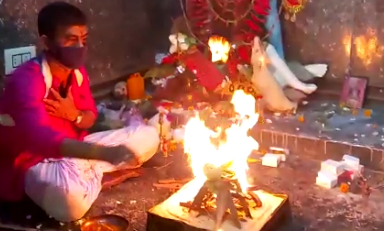 পূর্ব বর্ধমান জেলার শহর বর্ধমানের আলমগঞ্জ নিবেদক সংঘ ও নাট‍্যম ক্লাবের পক্ষ থেকে মা কালীর কাছে  মঙ্গলবার গোটা রাত্রি ব্যাপী এক হোম যজ্ঞের আয়োজন করা হয়। কারন, করোনা যেভাবে গোটা রাজ‍্যে ছেয়ে গেছে, সেইজন করোনাকে তাড়াতে এই যজ্ঞের আয়োজন বলে জানান ক্লাবের সদস‍্যরা।।