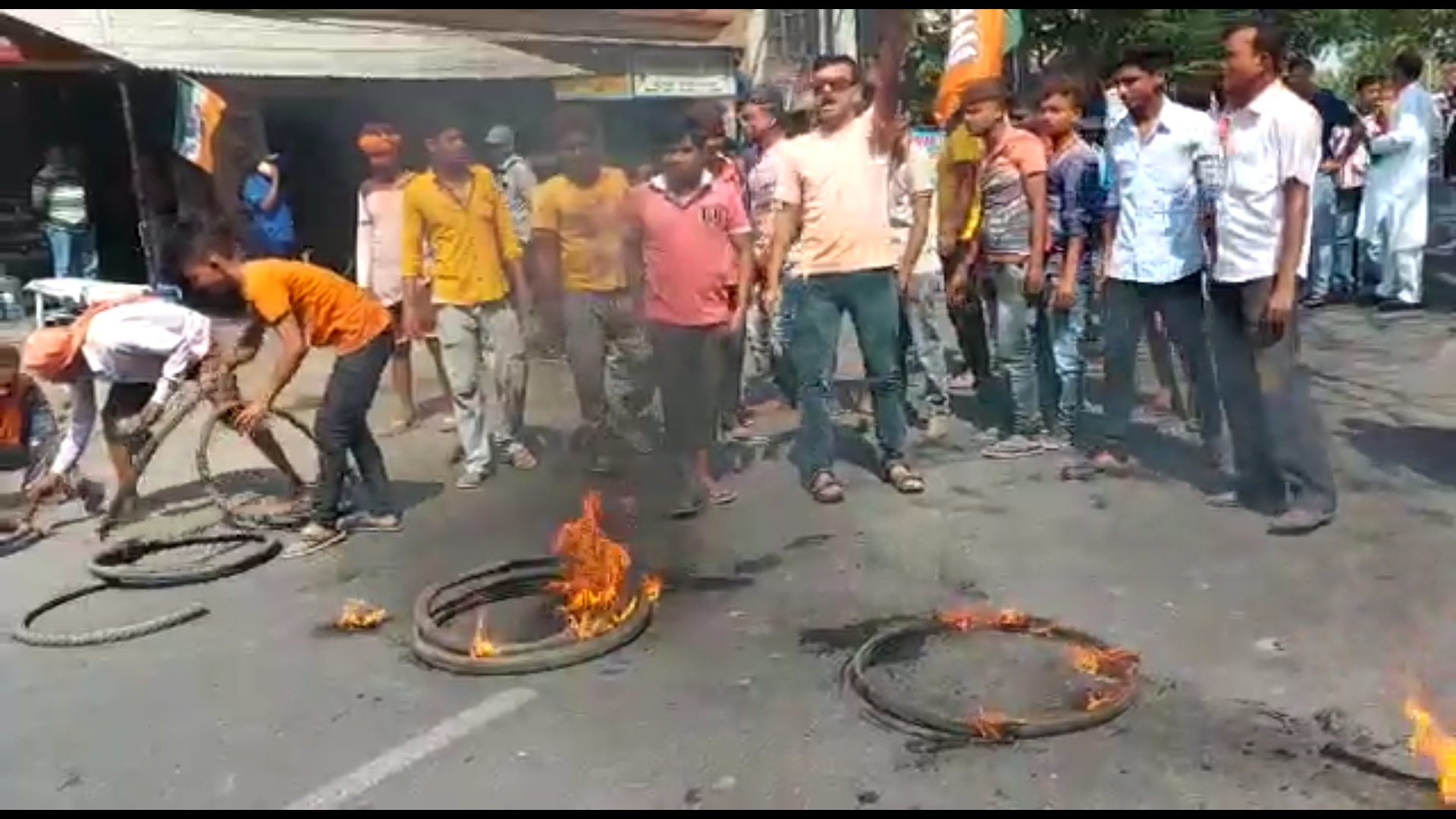 টুডে নিউজ সার্ভিস, বর্ধমানঃ বর্ধমান উত্তর বিধানসভার বিজেপির নির্বাচনী কার্যালয়ে পুলিশি তল্লাশির প্রতিবাদে বর্ধমান কালনা রোড অবরোধ করে শুক্রবার বিজেপি কর্মীসমর্থকেরা। রাস্তায় টায়ার জ্বালিয়ে প্রায় আধ ঘন্টা পথ অবরোধ চলে। বিজেপির অভিযোগ, বর্ধমানের কালনাগেট বনমসজিদ এলাকায় বিজেপি কর্মীরা সুভাষ দে-র বাড়ির নির্বাচনী কার্যালয়ে পাঁচটি মণ্ডলের কার্য কর্তাদের নিয়ে বৈঠকে বসেছিলেন। তখন আচমকাই পুলিশ এসে সেখানে তল্লাশি চালাতে আসে। এই ঘটনার প্রতিবাদে পুলিশকে ঘিরে বিক্ষোভ দেখায় বিজেপি কর্মীরা।