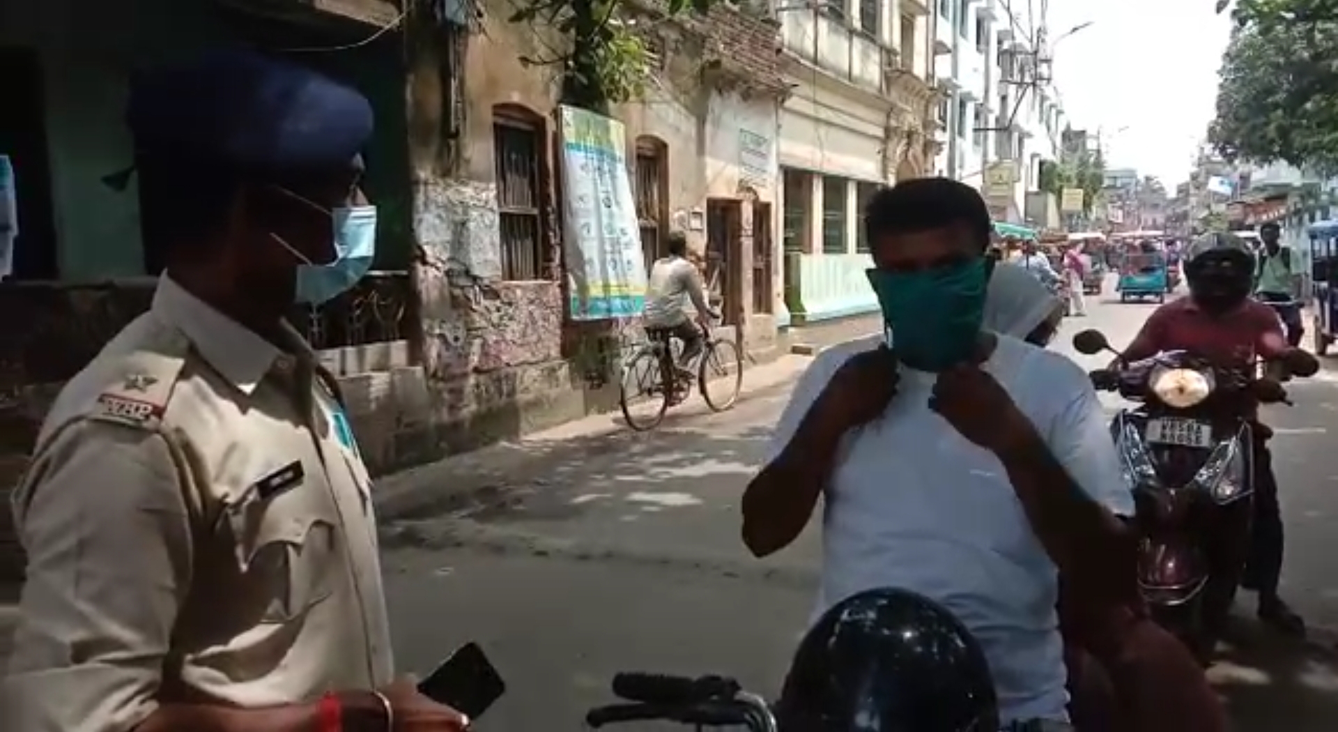 তারকনাথ সিট, কান্দিঃ রাস্তায় মোটর বাইক নিয়ে বের হলে যেমন হেলমেট পরা বাধ্যতামূলক, তেমনি করোনা আবহে রাস্তায় বের হলে মুখে মাস্ক পরা বাধ্যতামূলক। কিন্তু কে কার কথা শোনে আইনকে বুড়ো আঙুল দেখিয়ে কান্দি শহর জুড়ে দাপিয়ে বেড়াচ্ছে বাসিন্দারা।