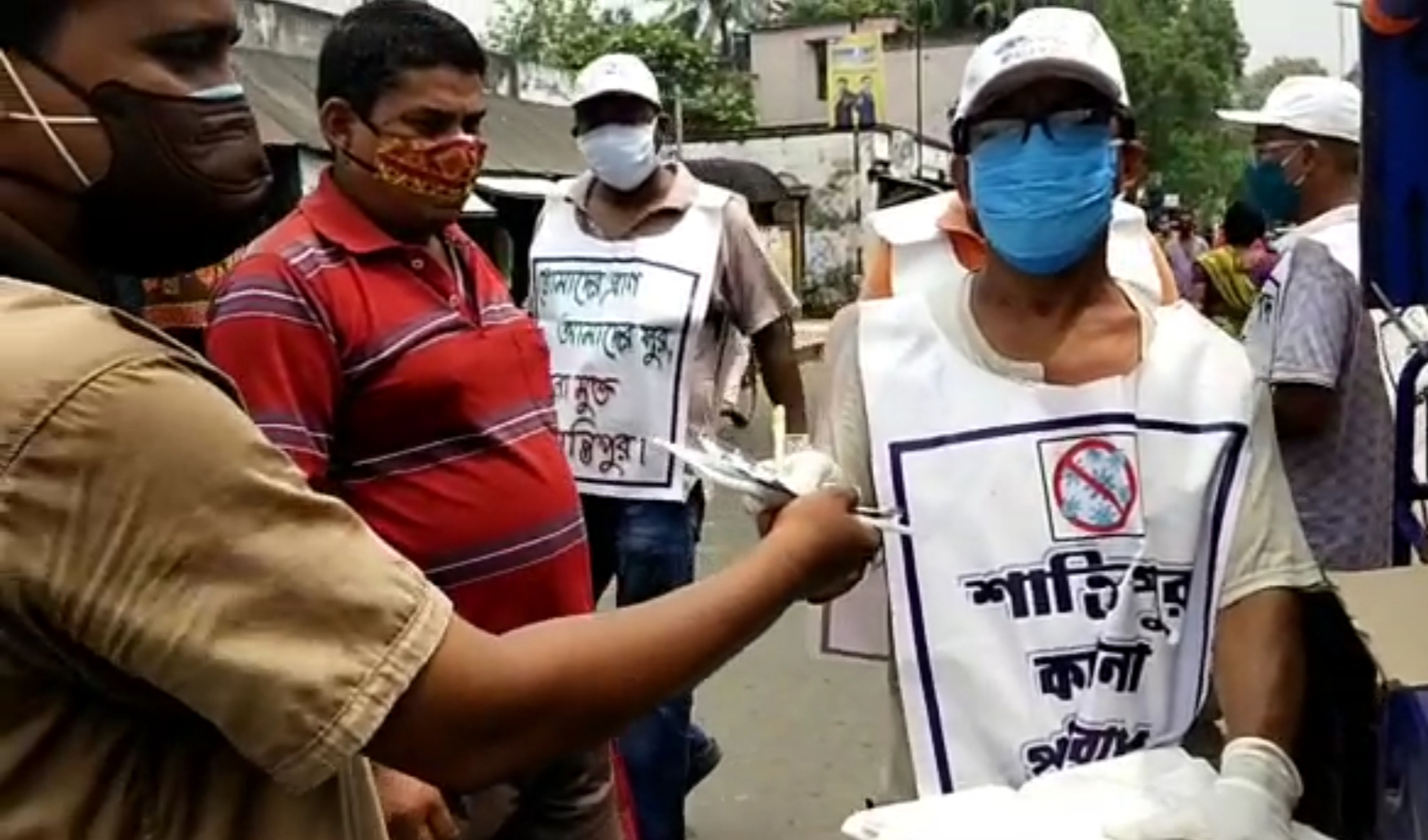 নিখিল কর্মকার, নদীয়াঃ করোনা সংক্রমনের দ্বিতীয় ঢেউয়ে বেশিরভাগই আক্রান্ত হচ্ছেন প্রবীণরা শরীরের ইমিউনিটি পাওয়ার কম থাকলে সহজেই সংক্রমিত হয়ে পড়ছেন তারা। চিকিৎসা ও অক্সিজেনের অভাবে প্রাণ হারাচ্ছেন অনেকেই তাই তাদের সুস্থ রাখতে এবার রাস্তায় নামল শান্তিপুরের সামাজিক সংগঠন করোনা প্রতিরোধ মঞ্চ। সোমবার কালো মেঘের ছায়া বৃষ্টিকে উপেক্ষা করেও শান্তিপুরের রাজপথের বিভিন্ন মোড়ে মোড়ে মাইকিং প্রচার ও হ্যান্ডবিল বিলি করে করোনার সচেতনতা প্রচারে নাবেন তারা। এছাড়াও রাস্তায় পথচলতি ৬০ বছরের ঊর্ধ্বে প্রত্যেক প্রবীণ মানুষকে তাদের সচিত্র পরিচয় পত্র এন্ট্রি করে ভিটামিন সি ট্যাবলেট প্রদান করেন তারা। এ বিষয়ে করোনা প্রতিরোধ মঞ্চের কর্ণধার অপূর্ব লাল সাহা বলেন, ২০২০ করোনা আবহে প্রায় আট মাস একদমে কাজ করেছি আমরা শান্তিপুর শহর থেকে গ্রামে স্যানিটাইজার মাস্ক তুলে দিয়েছি সাধারণ মানুষের মধ্যে।