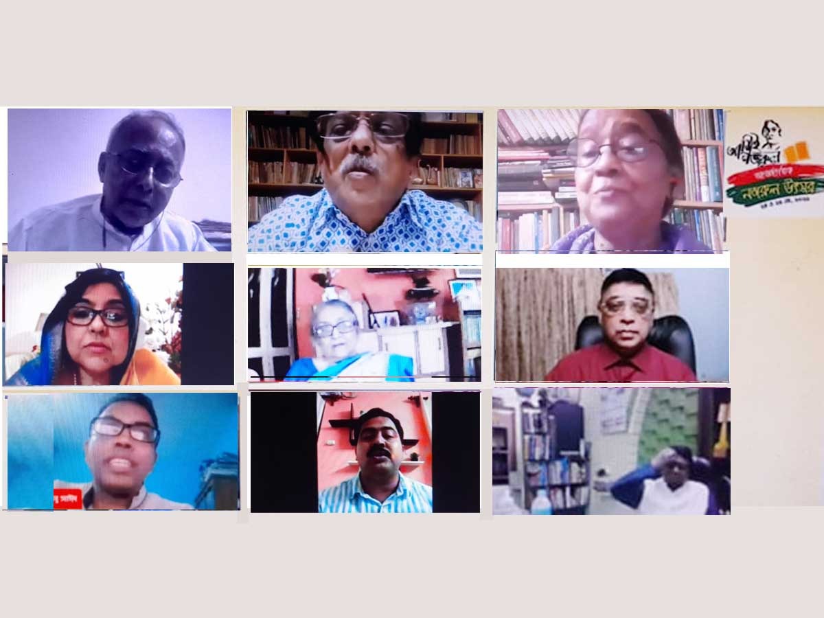 টুডে নিউজ সার্ভিসঃ বিদ্রোহী কবি কাজী নজরুল ইসলামের ১২২তম জন্মজয়ন্তী উপলক্ষে মঙ্গলবার বঙ্গীয় মুসলিম সাহিত্য পরিষদ ও উদার আকাশ পত্রিকার উদ্যোগে একটি মনোজ্ঞ ভার্চুয়াল অনুষ্ঠান হল। দুই বাংলার বেশ কয়েকজন বিশিষ্ট বুদ্ধিজীবী, সাহিত্যিক, নজরুল গবেষক এবং নজরুল অনুরাগী ওই অনুষ্ঠানে অংশ নেন। উজ্জ্বল উপস্থিতি ছিল বেশ কয়েকটি শিশুরও। নজরুলের জীবন ও সাহিত্যকর্মের বিভিন্ন দিক সম্পর্কে আলোচনা, নজরুলের কবিতা আবৃত্তি, নজরুলের গান পরিবেশন, কবিকে শ্রদ্ধা জানিয়ে স্বরচিত কবিতাপাঠ প্রভৃতির মাধ্যমে ঘণ্টা তিনেকের ওই অনুষ্ঠান বিশেষ মাত্রা পায়। প্রখ্যাত সাংবাদিক ও সাহিত্যিক মোশারফ হোসেন, নজরুল গবেষক ড. মোহাম্মদ শামসুল আলম, ড. নুরুল ইসলাম, উদার আকাশ সম্পাদক ফারুক আহমেদ, প্রাবন্ধিক দীপক সাহা প্রমুখ অনেকেই এতে অংশ নেন।
