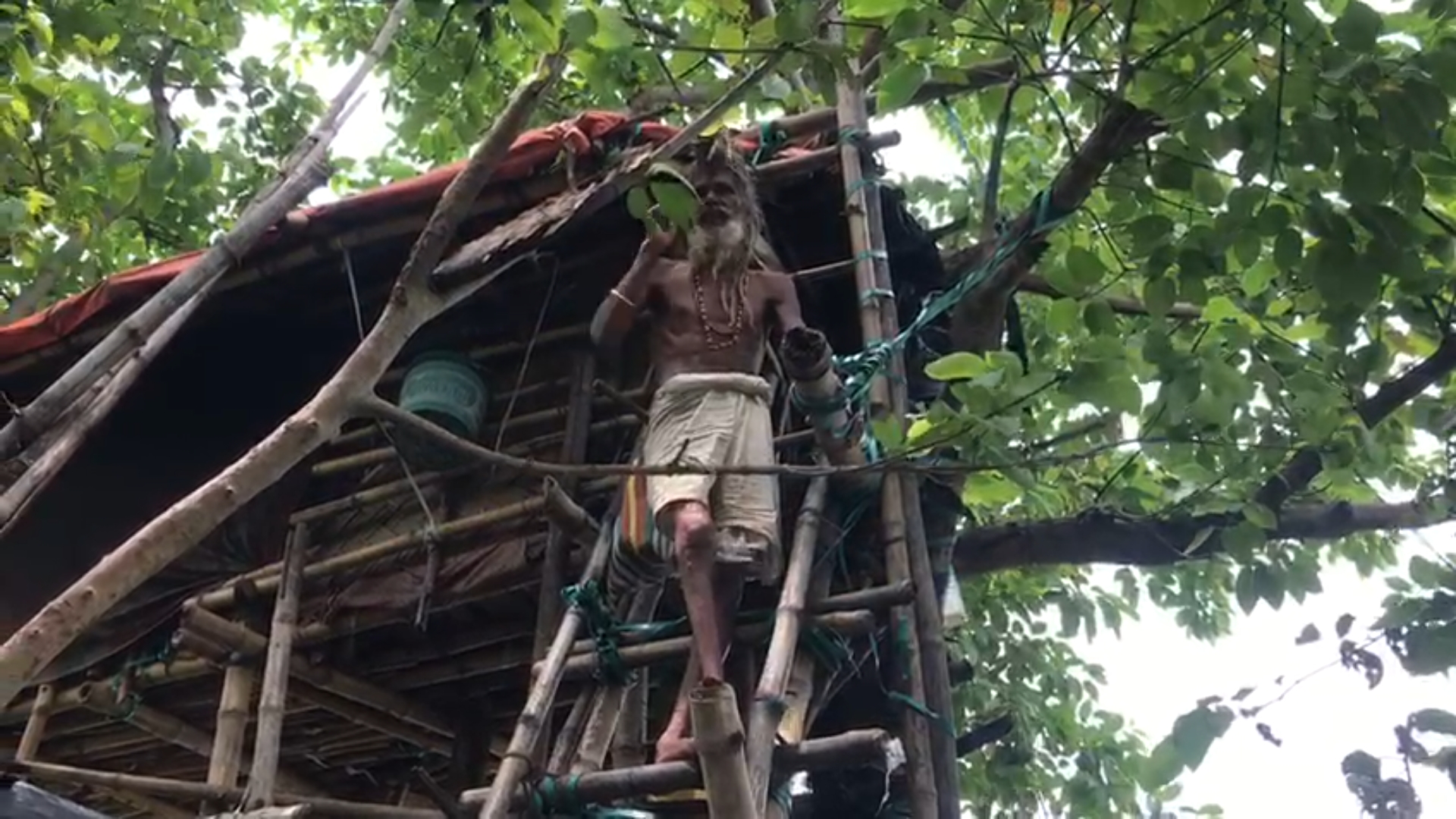 শ্যামল দাস নামে এই সাধু পূর্বে রানীর চড়া এলাকার একজন নামকরা কাঠমিস্ত্রি ছিলেন। বর্তমানে তাঁর পরিবারে স্ত্রী রয়েছেন তিনি ওই এলাকাতেই নিজের বাড়িতে বসবাস করেন। সাধুবাবার মেয়েরা বিবাহসূত্রে থাকেন বাইরে। ধর্ম কর্মে মনোনিবেশ করার পর আনুমানিক ১৫ বছর যাবৎ তিনি সংসার ত্যাগ করে দেশ-বিদেশের বিভিন্ন ধর্মস্থান পরিদর্শন করার পর বর্তমান করোনা পরিস্থিতিতে ভাগীরথী নদীর ধারে গাছের উপর ঘর বানিয়ে একান্তে বসবাস শুরু করেন তিনি। শহরের বিভিন্ন প্রান্তে ঘুরে ভিক্ষাবৃত্তি করে নিজের অন্ন সংস্থান করেন এই সাধু বাবা। করোনা মহামারী শুরু হওয়ার পর থেকে সপ্তাহে একদিন করে তিনি ভিক্ষার উদ্দেশ্যে বের হন বলে এইদিন জানান সাধু বাবা।