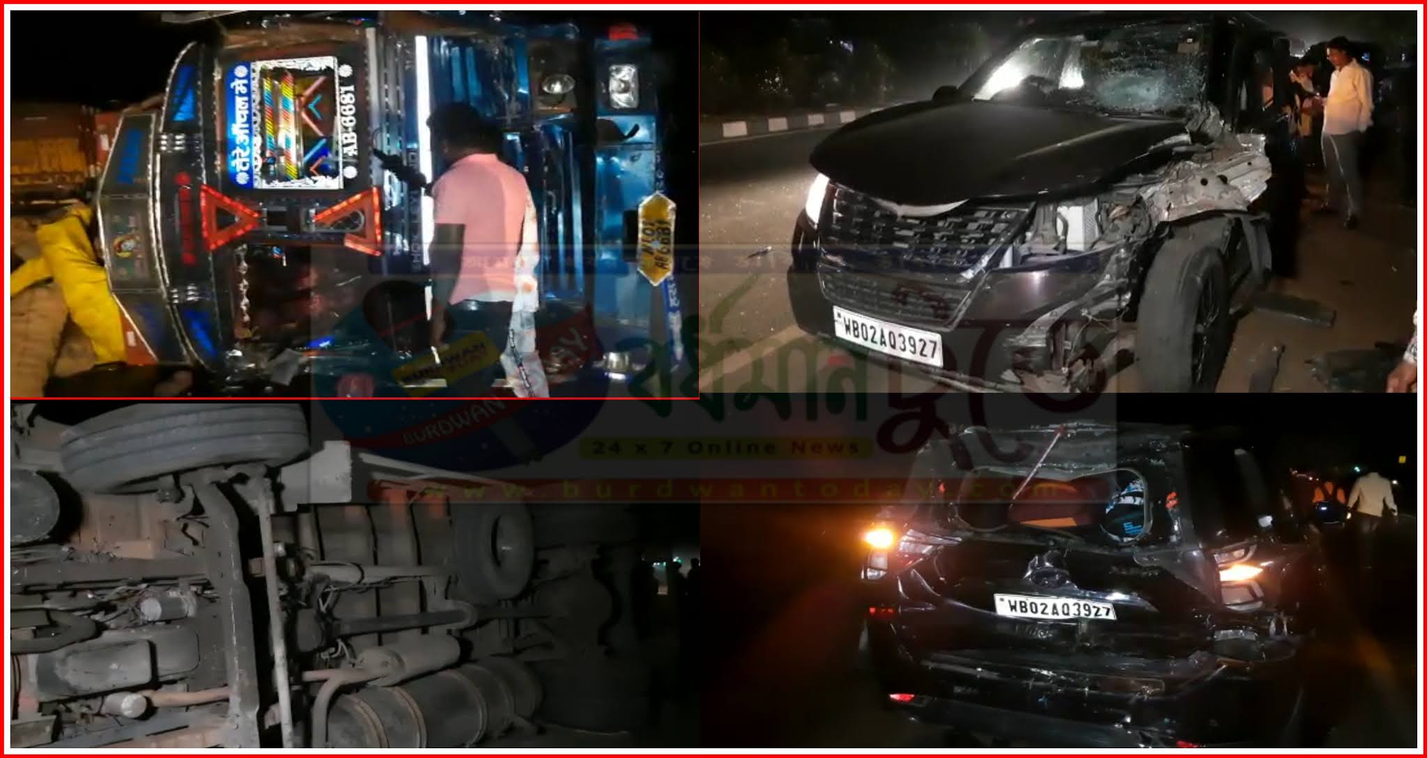 টুডে নিউজ সার্ভিস, বর্ধমানঃ কলকাতা থেকে দুর্গাপুরগামী  একটি আমবোঝাই দশ চাকার লড়ির টায়ার ফেটে বর্ধমানের জাতীয় সড়কের বামচাদাইপুর এলাকায় দুটো  চারচাকা গাড়ি এবং কয়েকটি দাঁড়িয়ে থাকা মোটর সাইকেলে ধাক্কা মেরে ডিভাইডার ক্রসিং করে উল্টোদিকে পরে যায় ঘটনাটি ঘটে শুক্রবার রাত্রে। স্থানীয় বাসিন্দারা জানান,  চার চাকা গাড়ির ভেতরে থাকা চারটি বাচ্চা আহত হয়েছে তাদেরকে উদ্ধার করে জাতীয় সড়কের ধারে থাকা একটি বেসরকারী হাসপাতালে ভর্তি করা হয়। যদিও ঘটনায় লড়ির চালক ও খালাসি পলাতক । খবর পেয়ে ঘটনাস্থলে আসে শক্তিগড় থানার পুলিশ।