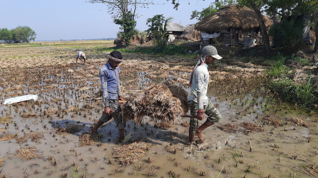 টুডে নিউজ সার্ভিস, বর্ধমানঃ পূর্ব বর্ধমান জেলার রায়না ১ ব্লকের অন্তর্গত উচিৎপুর গ্রামের ধান চাষিদের বেহাল অবস্থা। কালবৈশাখী ঝড়ের তান্ডব আর প্রবল বৃষ্টিতে সমস্ত ধান জলের তলায়। জলের তলায় ধান চলে যাওয়া মানে সেই ধান আর বিক্রি হবে না। এই কথা ভেবেই মাথায় হাত পড়েছে ধান চাষীরা। উচিৎপুর এলাকায় বেশিরভাগ চাষিরা ক্ষুদ্র চাষী। কেউ ঠিকা নিয়ে চাষ করেন তো কেউ ভাগে চাষ করেন। মূলত কৃষিকাজের উপরেই নির্ভর করে ক্ষুদ্র ও প্রান্তিক চাষীদের জীবিকা নির্বাহ করতে হয়। অনেকেই আবার মহাজনের কাছ থেকে চড়া সুদে ঋণ নিয়ে চাষ করেছেন। কিন্তু তারই মধ্যে বেশ কয়েকদিন ধরে ঝড়-বৃষ্টিতে ধান চাষে প্রচুর ক্ষয়ক্ষতি হয়ে গিয়েছে। এর মধ্যে সরকারের মুখাপেক্ষী হয়ে পড়েছে উচিৎপুর গ্রামের কৃষকরা।