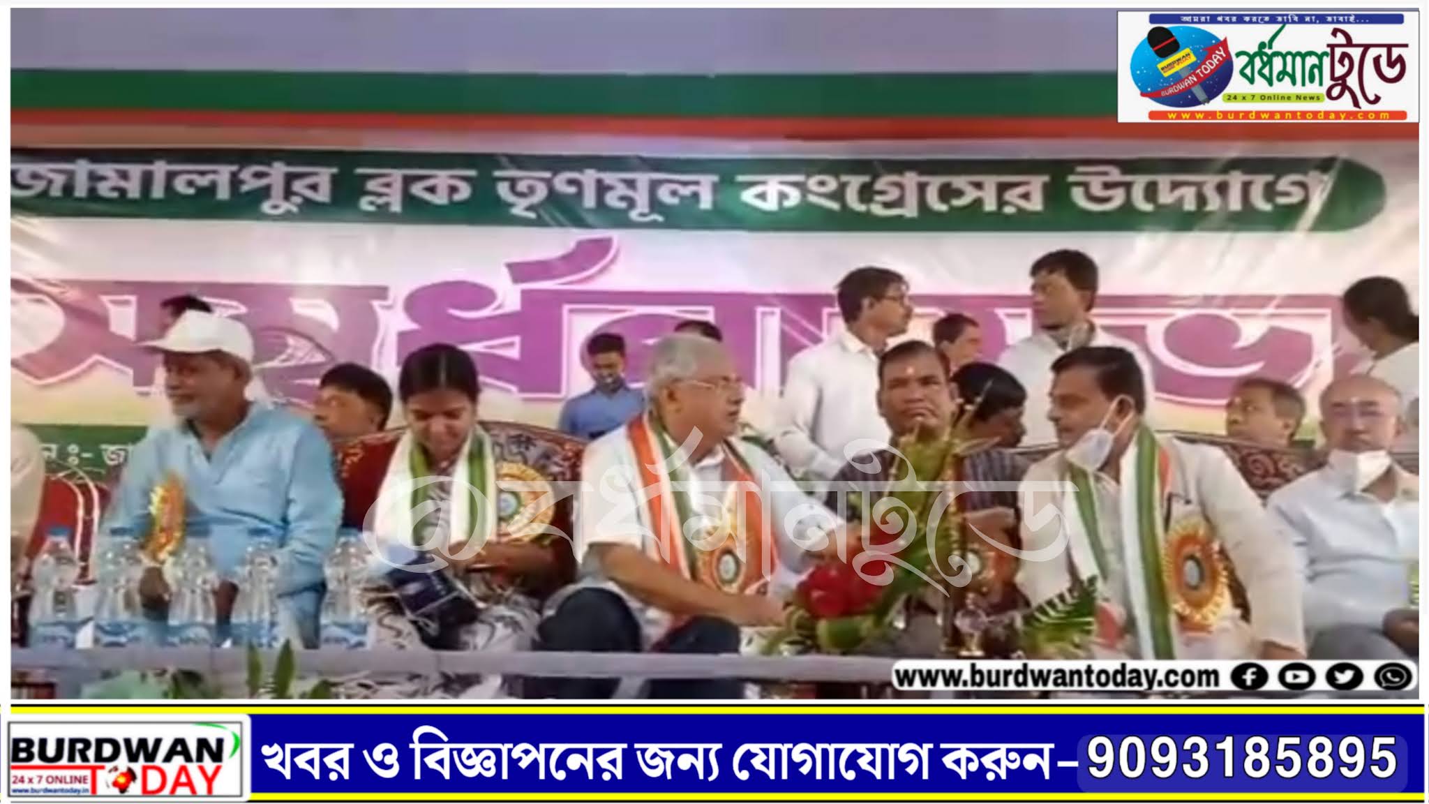 টুডে নিউজ সার্ভিস, বর্ধমানঃ পূর্ব বর্ধমান জেলার জামালপুর ব্লক তৃণমূল কংগ্রেসের উদ্যোগে রবিবার পূর্ব বর্ধমান জেলার ১৬ জন বিধায়ক, ২৩ জন ব্লক সভাপতি, পঞ্চায়েত সমিতির সভাপতিদের সম্বর্ধনা দেওয়া হয়। সেই সঙ্গে নবনিযুক্ত জেলা তৃণমূল সভাপতি, জেলা সভানেত্রী, জেলা যুব সভাপতি, শ্রমিক সংগঠনের সভাপতি ও ছাত্র সভাপতিদের সম্বর্ধনা দেওয়া হয় এদিন। জামালপুরের নেতাজী ময়দানে হয় এই কর্মসূচি, সাক্ষী ছিলেন জামালপুর ব্লকের হাজার পাঁচেক মানুষ সহ স্থানীয় নেতা-নেত্রীরা। উপস্থিত ছিলেন রাজ্যের মন্ত্রী স্বপন দেবনাথ, মুখ্যমন্ত্রীর কৃষি উপদেষ্টা প্রদীপ মজুমদার, জেলা সভাপতি রবীন্দ্রনাথ চট্টোপাধ্যায়, জেলা সভাধিপতি শম্পা ধাড়া সহ জেলা তৃণমূলের শীর্ষস্থানীয় নেতৃত্বরা।