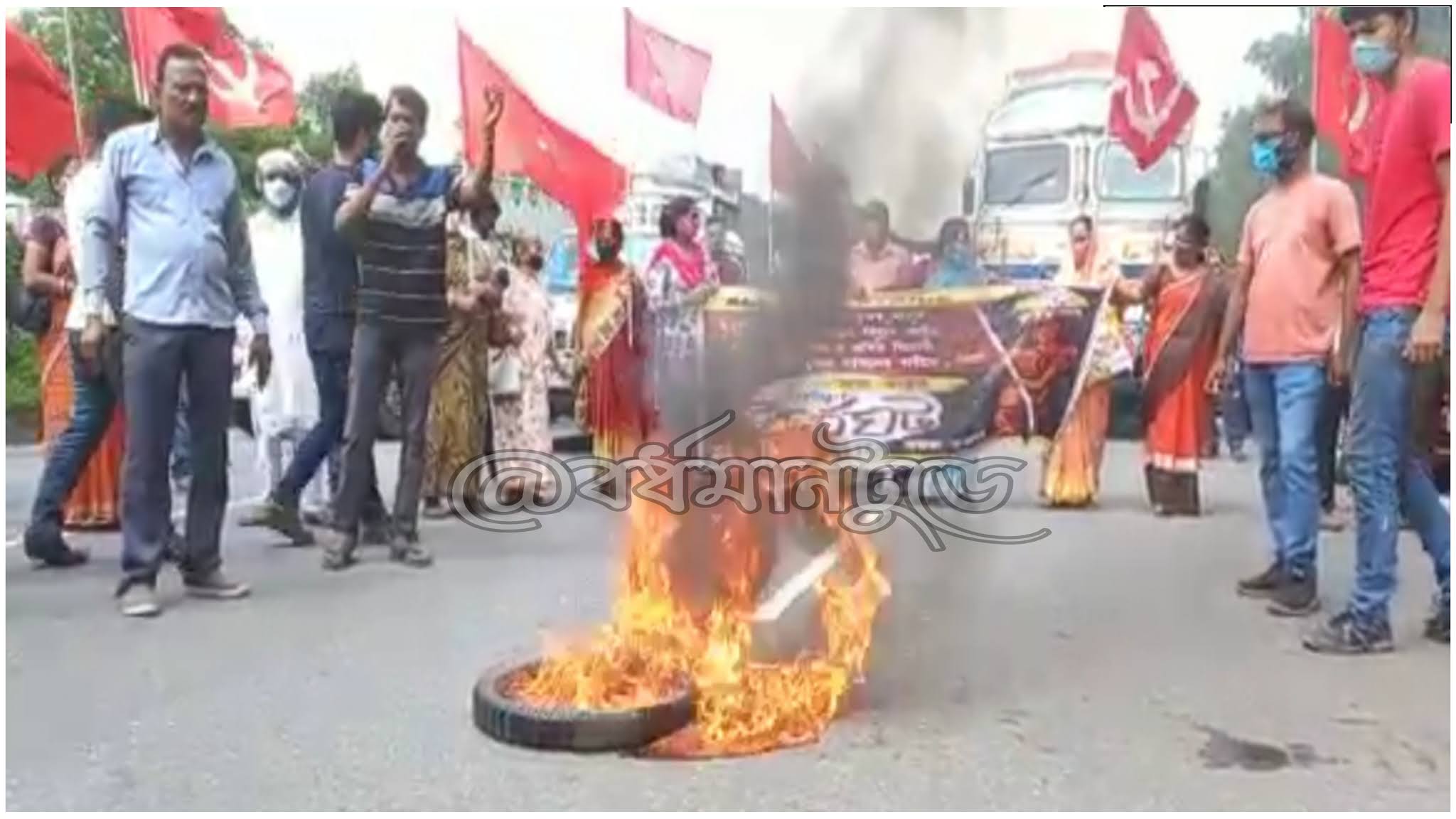 সুপ্রিয় পরামানিক, দুর্গাপুরঃ সারা ভারত সাধারণ ধর্মঘটের সমর্থনে বাম সমর্থকরা দুর্গাপুরে দফায় দফায় বিক্ষোভ দেখায়। বিক্ষোভ ঘিরে ব্যাপক উত্তেজনা ছড়ায়। ঘটনাস্থলে কোকওভেন থানার বিশাল পুলিশবাহিনী এসে পরিস্থিতি সামাল দেয়। এদিন সকালেই রেলস্টেশনে সরকারি বাস আটকে বিক্ষোভ দেখায়। বিক্ষোভ ঘিরে বাস চলাচল ব্যাহত হয়। স্টেশন থেকে দুর্গাপুর বাঁকুড়া রাজ্য সড়কের বাঁকুড়া মোড় পর্যন্ত মিছিল করে বিক্ষোভকারীরা।