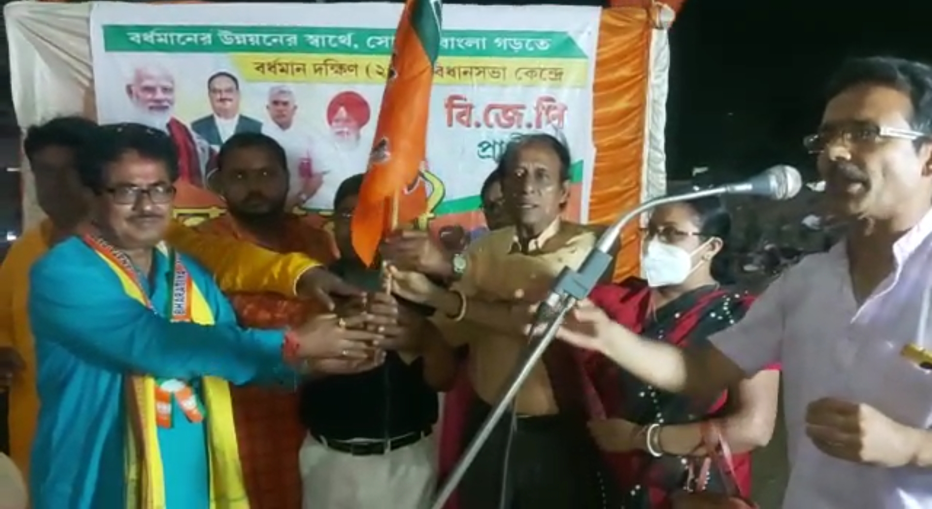 টুডে নিউজ সার্ভিস, বর্ধমানঃ পূর্ব বর্ধমান জেলার শহর বর্ধমান স্টেশনে তৃণমূল ছেরে বিজেপিতে যোগদান করলেন তিনজন ।তাদের মধ্যে জেলার সাধারন সম্পাদক ঠাকোহরি ঘোষ,সমাজসেবী পিরু দত্ত ,রুমি ব্যানার্জি যোগ দিলেন।এদিন বর্ধমান দক্ষিন বিধানসভার কেন্দ্রের প্রার্থী সন্দিপ নন্দি তাদের হাতে দলীয় পতাকা তুলে দিলেন।এদিন এই যোগদান কর্মসূচিতে উপস্থিত ছিলেন বর্ধমান জেলার বিজেপির যুব মোর্চার সভাপতি শুভম নিয়োগী ,বিজেপি নেতা খোকন সেন সহ অনান্য বিজেপির কর্মীসমর্থকেরা।
