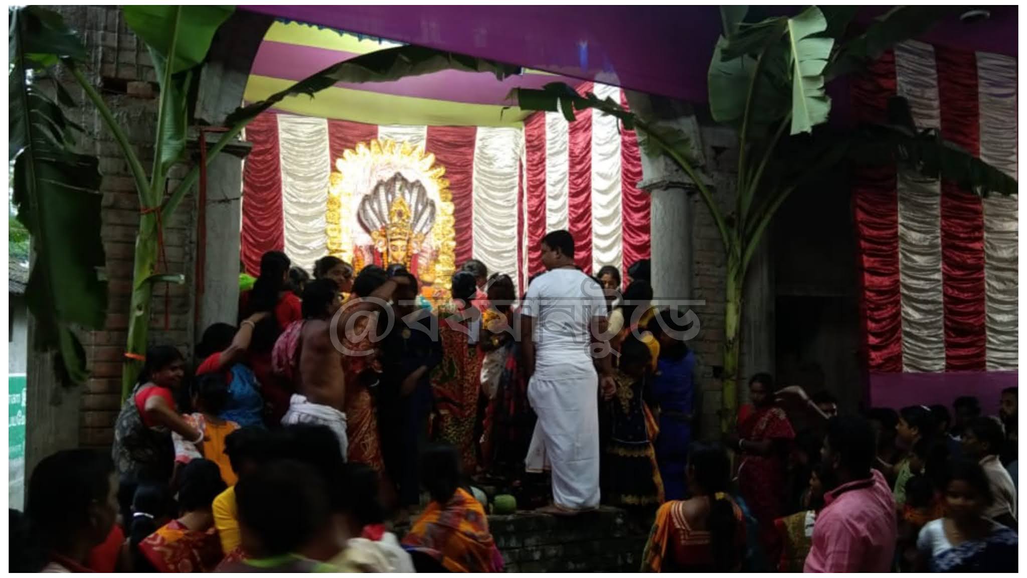 তারকনাথ সিট, মুর্শিদাবাদঃ মুর্শিদাবাদ জেলার কান্দি শহরের বাগডাঙ্গা সাহারানপুর এলাকার মনসা পুজো আনুমানিক ৫০ বছরের পুরনো। বাগডাঙ্গার এই মনসা পুজো বর্তমানে শুধু পাঠা বলি হয় বলে জানিয়েছেন পূজা উদ্যোক্তারা। এই পুজোকে কেন্দ্র করে নরনারায়ণ সেবারও আয়োজন করত পুজো উদ্যোক্তারা কিন্তু গত দু’বছর ধরে অতিমারির কারণে নরনারায়ন সেবার অনুষ্ঠান তারা বন্ধ রেখেছে।