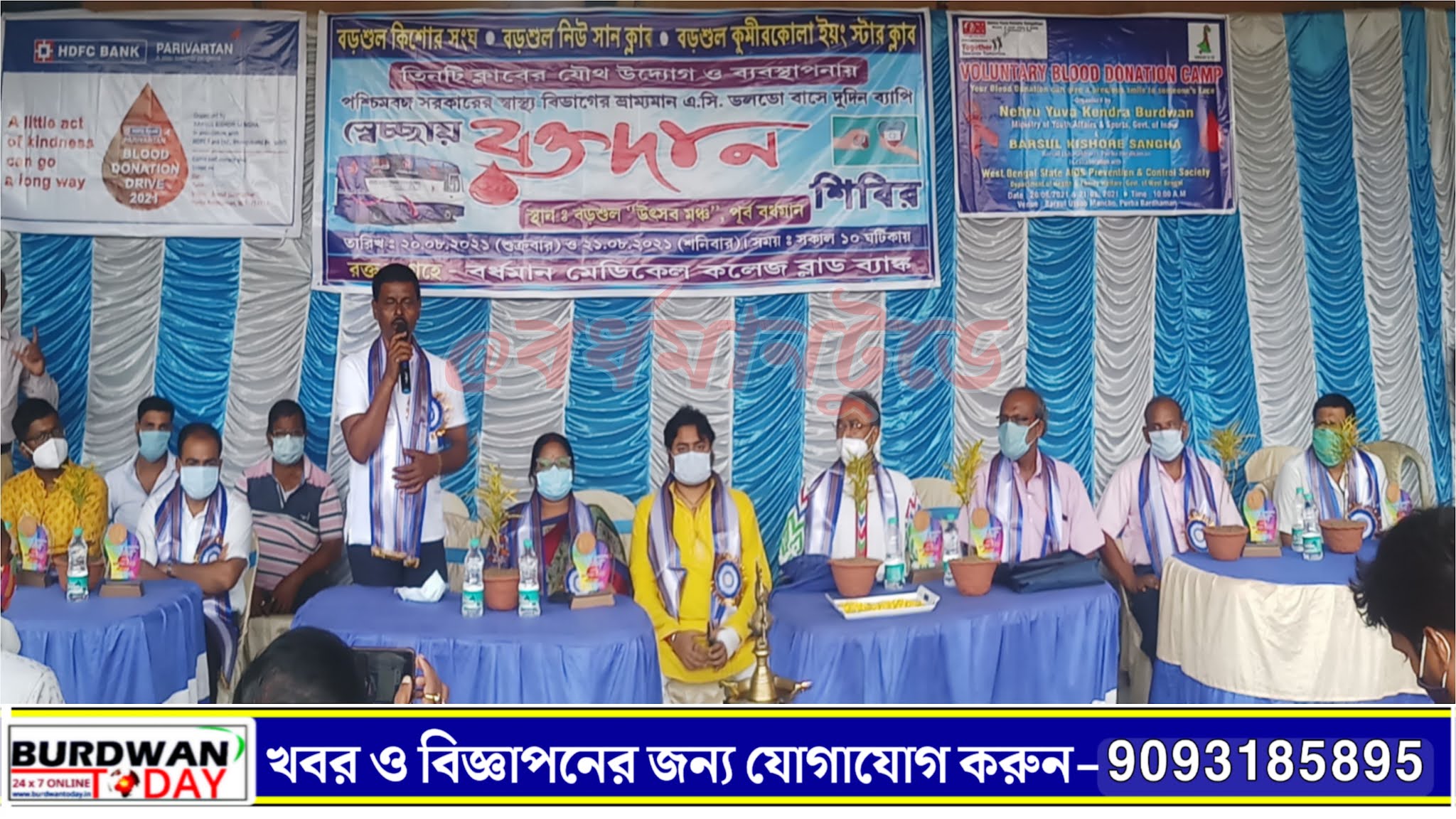 প্রবীর মণ্ডল, বড়শুলঃ রক্ত দিয়ে সুস্থ থাকুন, মনের ভ্রান্তি দূরে রাখুন। বর্তমান পরিস্থিতিতে রক্তের ভাঁড়ারে পড়েছে টান। এ কারণে বহু মুমূর্ষ রোগীকে অসুবিধার সম্মুখীন হতে হচ্ছে। এই পরিস্থিতিতে দাঁড়িয়ে বর্ধমান ২ ব্লকের বড়শুল উৎসব ময়দানে  বড়শুল কিশোর সংঘ, বড়শুল নিউ সান ক্লাব, বড়শুল কুমিরকোলা ইয়ং স্টার ক্লাব এই তিন ক্লাবের যৌথ উদ্যোগে ও ব্যবস্থাপনায় পশ্চিমবঙ্গ সরকারের স্বাস্থ্য বিভাগের ভ্রাম্যমাণ এ.সি ভলভো বাসে দু’দিনের রক্তদান শিবির আয়োজন করা হয়। শুক্রবার ছিল প্রথম দিন। এদিন বিধায়ক নিশীথ কুমার মালিক জাতীয় পতাকা উত্তোলনের মধ্য দিয়ে এদিনের শুভ সূচনা করেন।