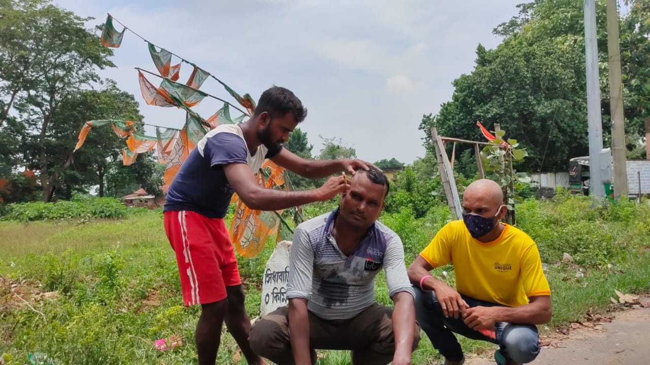 মাথা ন্যাড়া করে শোক প্রকাশ গ্রামবাসীদের