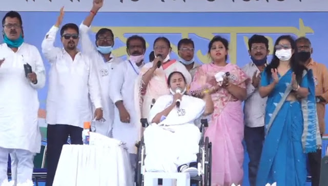 নিখিল কর্মকার, রানাঘাটঃ আমরা চাই শান্তিপূর্ণভাবে ভোট হোক গণতান্ত্রিক প্রক্রিয়ার মধ্য দিয়ে ভোট সম্পন্ন হোক বাংলায়। বোমাবাজি করে ভোট চাই না গুলি চালিয়ে ভোট চাই না রক্ত ঝরিয়ে ভোট চাই না গণতান্ত্রিক উপায়ে মানুষ শান্তিপূর্ণভাবে ভোট দেবে তাই মেনে নেব। সোমবার দুপুরে নদীয়া রানাঘাট উত্তর পশ্চিম বিধানসভা কেন্দ্রের তৃণমূল মনোনীত প্রার্থী শংকর সিংয়ের সমর্থনে রানাঘাট নসরাবাণী সংঘের ময়দানে এক দলীয় জনসভায় যোগদান করতে এসে এই কথাই বললেন তৃণমূল সুপ্রিমো মমতা বন্দ্যোপাধ্যায়। নির্বাচনের চতুর্দশীতে কোচবিহারের শীতলকুচির গুলিচালনার ঘটনার তীব্র নিন্দা করে ঘটনাটি সম্পূর্ণভাবে বিজেপির পূর্বপরিকল্পিত বলে এই দিনের সভা মঞ্চ থেকে বিজেপিকে কার্যত এক হাত নিলেন তৃণমূল সুপ্রিমো। পাশাপাশি এই ঘটনার পূর্ণ তদন্ত করা হবে বলেও এই দিন দাবি করেন তিনি। তৃণমূল ক্ষমতায় আসলে আগামী দিনে সারা রাজ্যের পাশাপাশি নদীয়া জেলার রানাঘাট, শান্তিপুর, ফুলিয়া, কৃষ্ণনগর নবদ্বীপ সহ বিস্তীর্ণ এলাকায় নতুন করে পাকা রাস্তা ঘাট ও ঘরবাড়ি নির্মাণ করা হবে। ঢেলে সাজানো হবে এলাকার ট্যুরিজম ব্যবস্থাকে। এছাড়াও জলস্বপ্ন প্রকল্পের মধ্য দিয়ে প্রতিটি ঘরে ঘরে পৌঁছে দেওয়া হবে পরিস্রুত পানীয় জল বলেও এই দিন প্রকাশ্য জনসভায় থেকে অগ্রিম উন্নয়নের বার্তা দিলেন মমতা বন্দ্যোপাধ্যায়। ভোটের দিন সকাল সকাল প্রত্যেককে ভোট কেন্দ্রে পৌঁছে নিজের ভোটটা তৃণমূলকে দেওয়ার জন্য আহ্বান জানান তিনি।