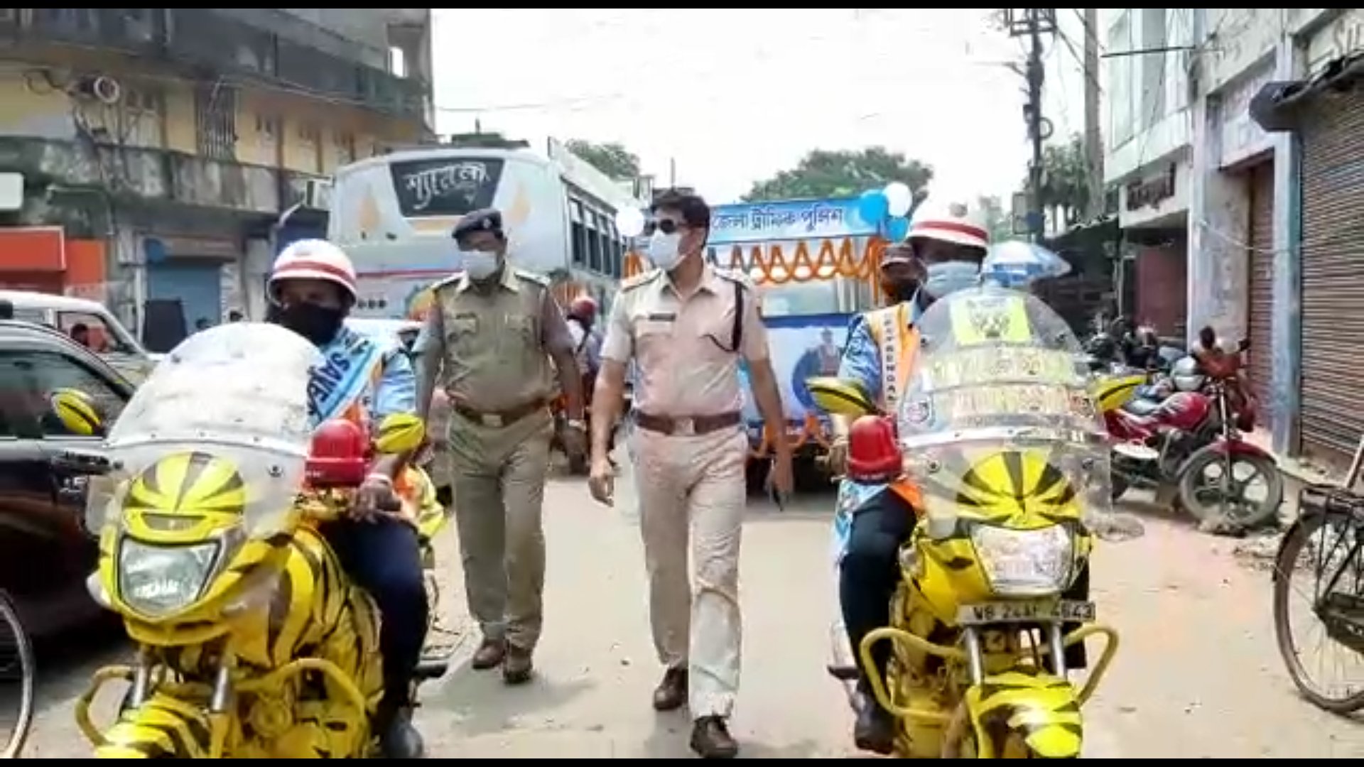 সুপ্রিয় পরামানিক, সিউড়িঃ পুলিশ দিবস উপলক্ষে বীরভূম জেলা ট্রাফিক পুলিশের তরফ থেকে সিউড়িতে একটি শোভাযাত্রার আয়োজন করা হয়। যে শোভাযাত্রায় বাইক সহ বিভিন্ন ধরনের পুলিশ গাড়ির সমাবেশ লক্ষ্য করা যায়। বীরভূম জেলা ট্রাফিক পুলিশের তরফ থেকে এই পুলিশ দিবস শোভাযাত্রা আয়োজন করা হয় মূলত পথ নিরাপত্তা সম্পর্কিত সচেতনতা বৃদ্ধি করতে। এদিনের এই শোভাযাত্রায় হাঁটতে লক্ষ্য করা যায় ডিএসপি ট্রাফিক সেখ আক্তার আলিকে।