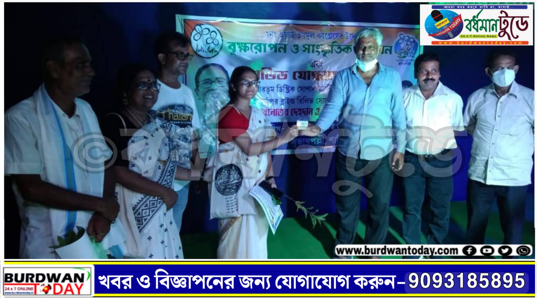 প্রীতিকণা জানা , বোলপুরঃ বোলপুর পৌরসভার ২ নং ওয়ার্ড , শান্তিনিকেতন সুভাষ পল্লী এলাকায় , তৃণমূল কংগ্রেসের উদ্যোগে ২২ শ্রাবণ উপলক্ষে পাড়ার কচিকাঁচা দের নিয়ে বৃক্ষরোপণ উৎসব , মরণোত্তর দেহ ও চক্ষুদান এর অঙ্গীকার পত্রে স্বাক্ষর এবং কোভিড যোদ্ধাদের সম্বর্ধনা জ্ঞাপন করা হয় । বর্ণাঢ্য শোভাযাত্রা র মধ্য দিয়ে বৃক্ষরোপণ অনুষ্ঠান শুরু হয় ।